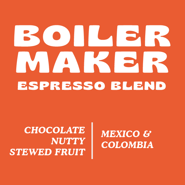 Boilermaker is our carefully crafted & incredibly delicious house espresso blend. It's sweet, nutty, chocolately, and an all around crowd-pleaser. Boilermaker is a seasonal blend so no matter the time of year or composition, it consistently delivers fresh and high quality flavour. While roasted and blended with espresso brewing in mind, it can definitely make for a deliciously balanced filter coffee too.